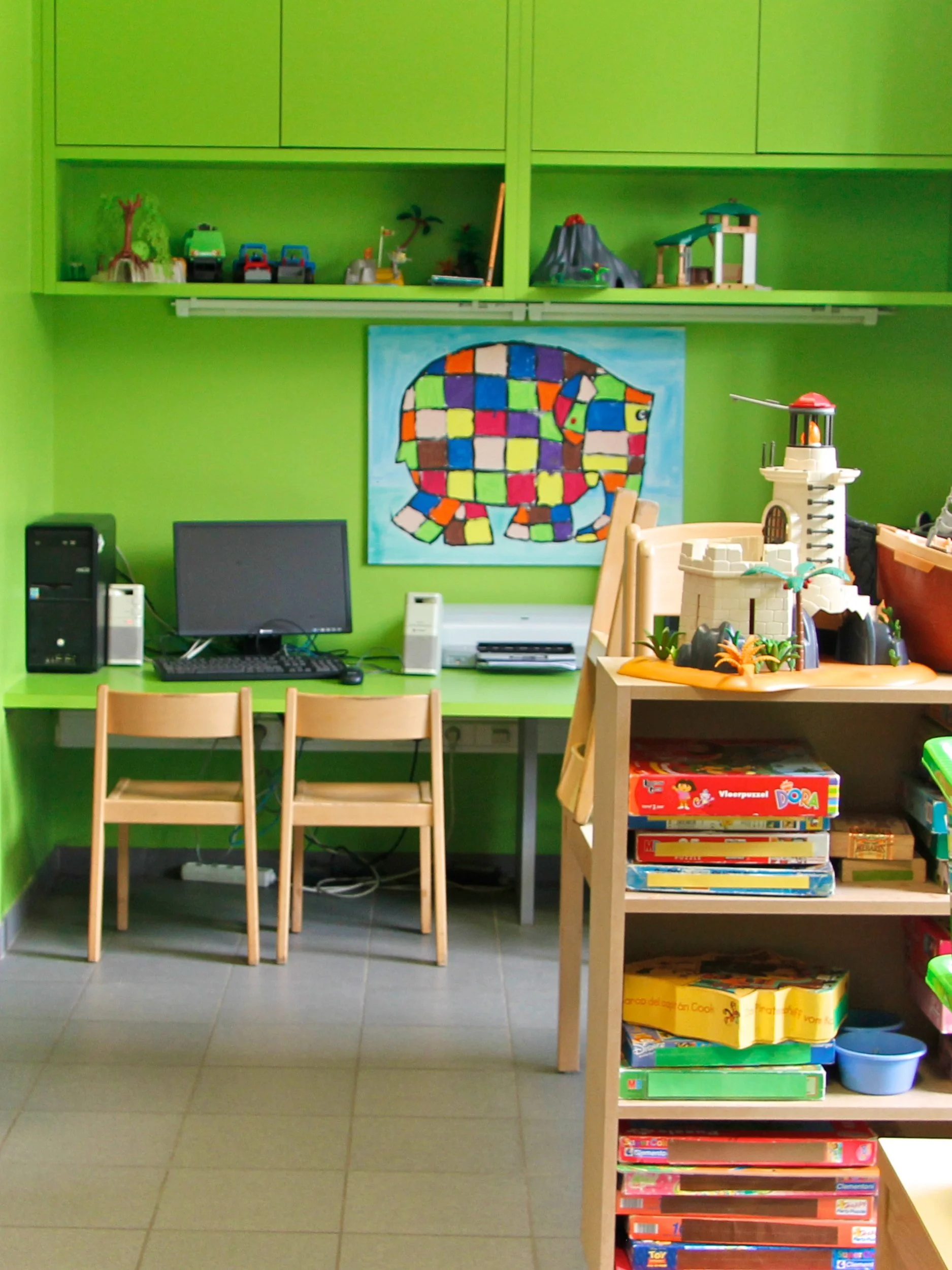 De renovatie van een bestaande klassenblok en de toevoeging van een luifel versterken het geheel. Zes kleuterklassen kregen elk een eigen toegang en sanitair, terwijl de nieuwe overkapping extra beschutting biedt en de overgang tussen klas en speelplaats verzacht. Zo ontstaat een open leeromgeving die uitnodigt tot ontmoeting en beweging, in lijn met de openluchtvisie van de school.